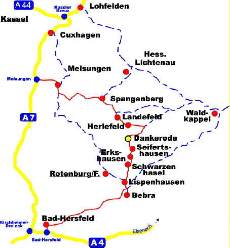Von Osten: Autobahn A4 kommend bis Abfahrt Bad Hersfeld, weiter wie